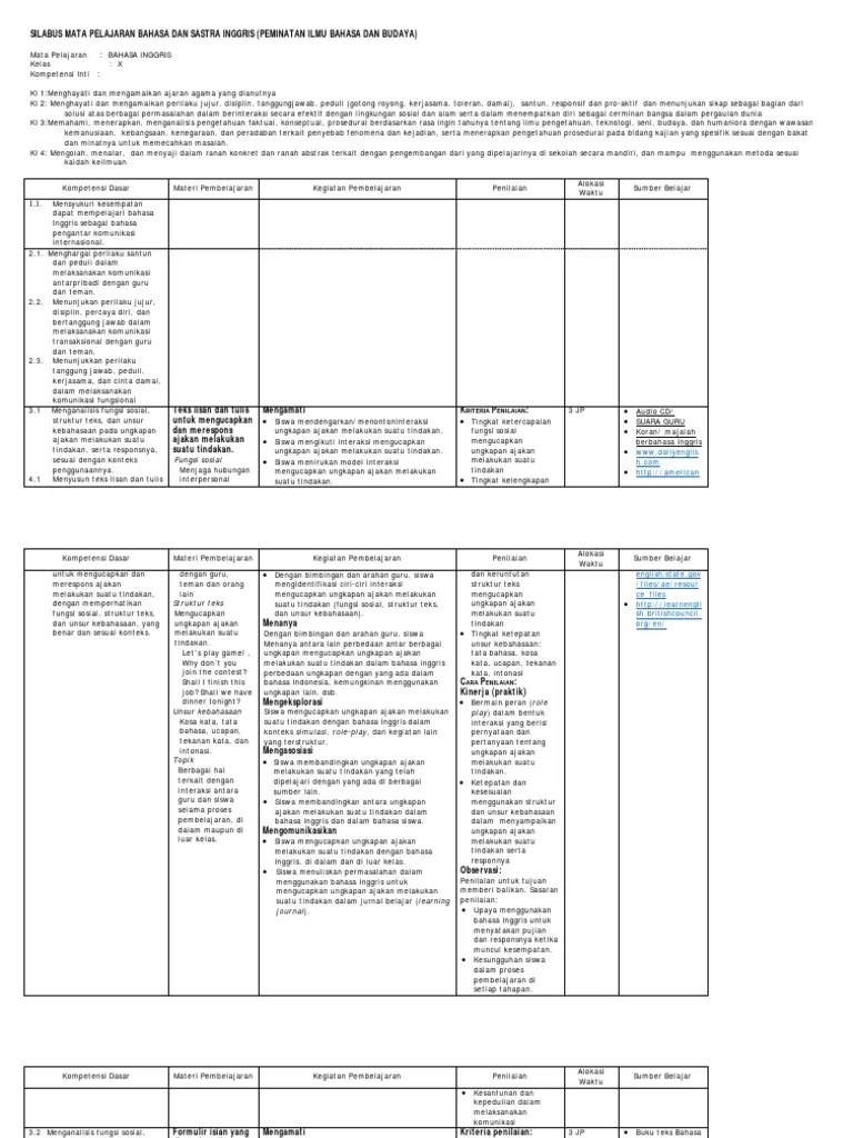 Lengkap silabus mapel bahasa inggris peminatan kelas xii (12) sma/ma kurikulum 2013 revisi tahun 2021. Download silabus bahasa inggris kelas xii. Download silabus dan rpp sma silbus bahasa indonesia kelas xii wajib1. Download silabus dan rpp sma silabus bahasa inggris sma kls x_peminatan. Takterkecuali untuk rpp bahasa inggris peminatan kelas xii juga menggunakan rpp revisi 2021 yaitu format satu halaman.